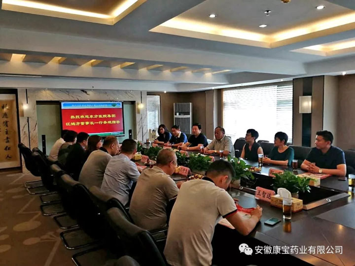 實(shí)地參觀之后,雙方進(jìn)行了廣泛深入的溝通交流。談話中,江董事長(zhǎng)就東方醫(yī)院集團(tuán)及康寶藥業(yè)的發(fā)展?fàn)顩r進(jìn)行了詳細(xì)的介紹,并強(qiáng)調(diào)康寶藥業(yè)是東方醫(yī)院集團(tuán)唯一藥品供應(yīng)單位。會(huì)上,雙方就如何深入合作交換了意見,達(dá)成了共識(shí)。