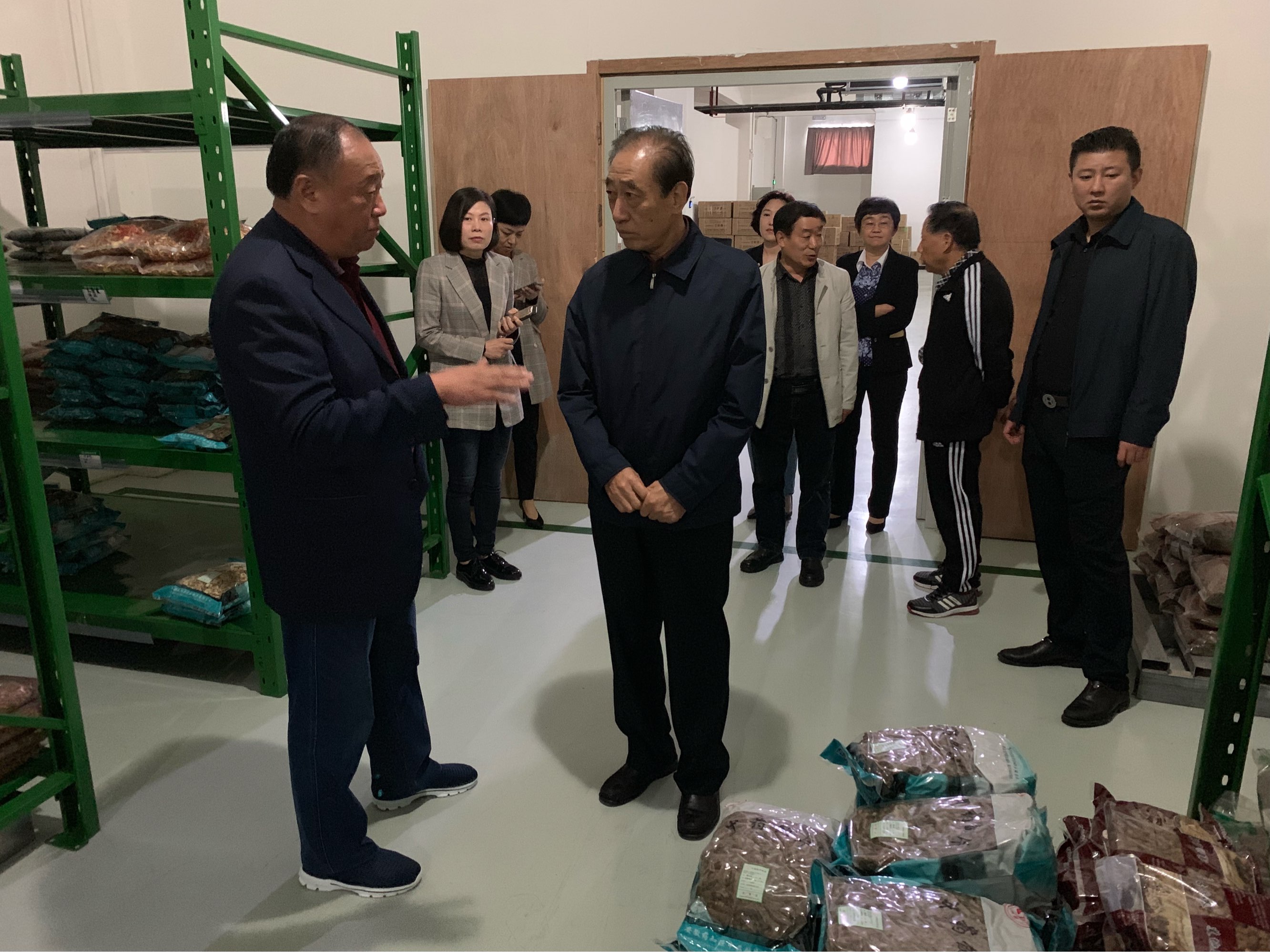 老領(lǐng)導(dǎo)楊愛光一行在江鴻方董事長陪同下,饒有興致地參觀了康寶藥業(yè)公司的庫房。